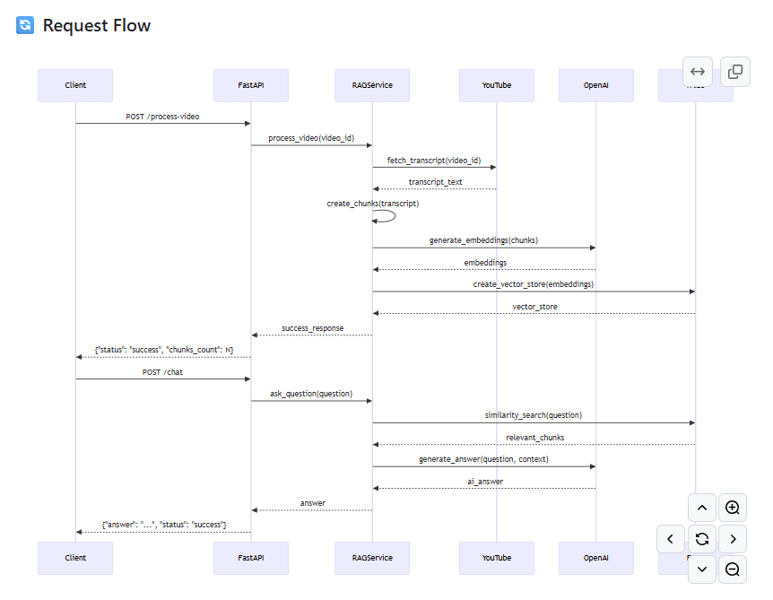 ChatTube: AI-Powered Video Insights Overview: ChatTube is an innovative application that transforms YouTube videos into interactive knowledge bases. Leveraging the power of Retrieval-Augmented Generation (RAG), it allows users to engage in intelligent conversations with video content, providing accurate AI-generated answers based on the actual transcript. Key Features: Smart Video Processing: Automatically extracts and analyzes YouTube video transcripts. AI-Powered Q&A: Utilizes GPT-4o-mini for contextual question answering. Vector Search: Employs FAISS for efficient similarity search and context retrieval. Modern Frontend: Features a responsive Streamlit interface with real-time updates. Production Ready: Dockerized and deployed on AWS EC2 for scalable performance. Technologies Used: Backend: FastAPI, YouTube Transcript API, LangChain, OpenAI, FAISS Frontend: Streamlit Deployment: Docker, AWS EC2 Project Highlights: Interactive Chat Interface: Users can ask questions about video content and receive precise answers. Real-time Status Monitoring: Provides live updates on API connectivity and video processing status. Comprehensive Logging and Error Handling: Ensures robust performance and easy troubleshooting. Impact: ChatTube enhances the way users interact with video content, making it a valuable tool for educators, researchers, and content creators seeking deeper insights into video material.